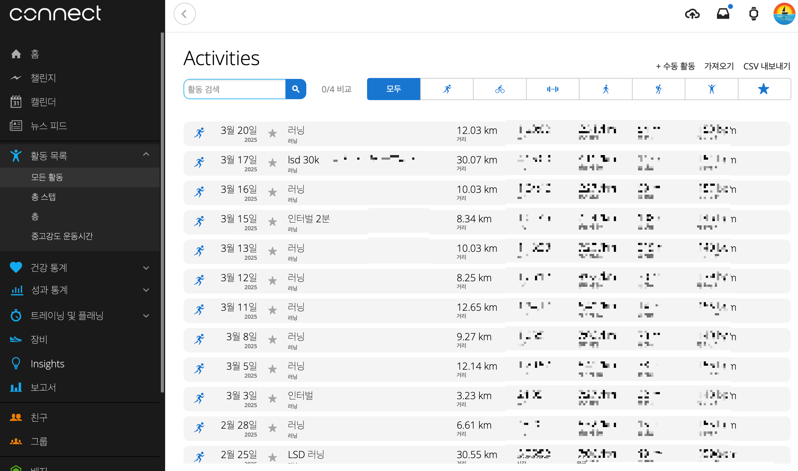 아래 사진처럼 모든 러닝 기록을 볼 수 있다