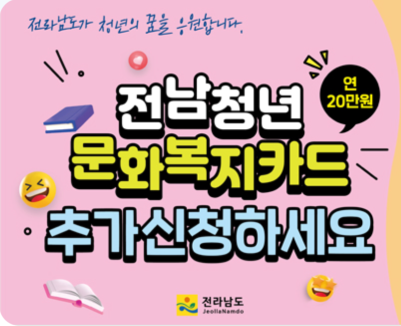 전라남도는 도내 거주하는 청년의 문화생활 향유 및 자기발전 기회를지원하기 위해 「전남청년 문화복지카드 지원사업」 대상자를 추가 모집한다