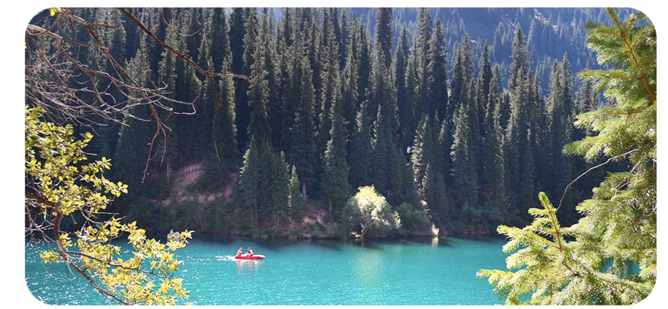 카인디 호수는 콜사이 호수에서 약 15km 떨어진 곳에 위치한 독특한 경관의 산악 호수로, 수면 위로 솟아오른 가문비나무들이 신비로운 분위기를 자아냅니다. 이 호수는 1911년 강진과 산사태로 인해 형성되었으며, 물에 잠긴 나무들이 그대로 보존되어 있어 "침몰한 숲"이라는 별칭을 가지고 있습니다.